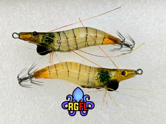A realistic squid jig that emulates a shrimp. Not only looks like a shrimp, their legs and antennas will move gently while it is moving under the water. Every single shrimp jig is unique because the colour patterns, antennae, legs and eyes are hand made. So they are all different from each other.